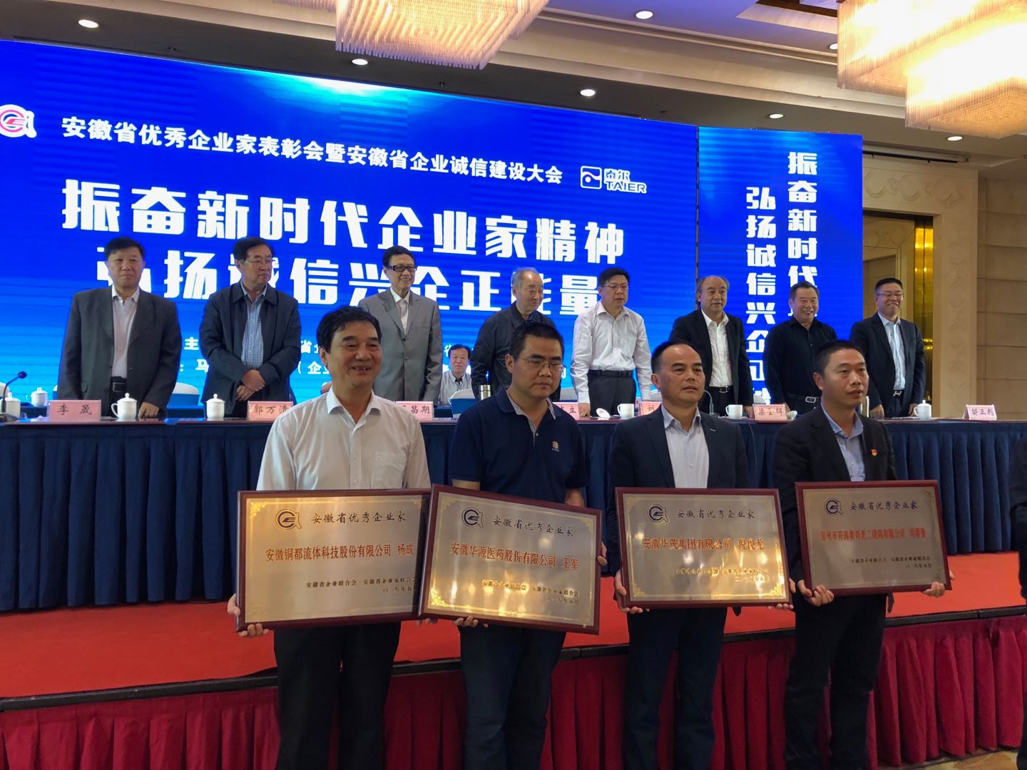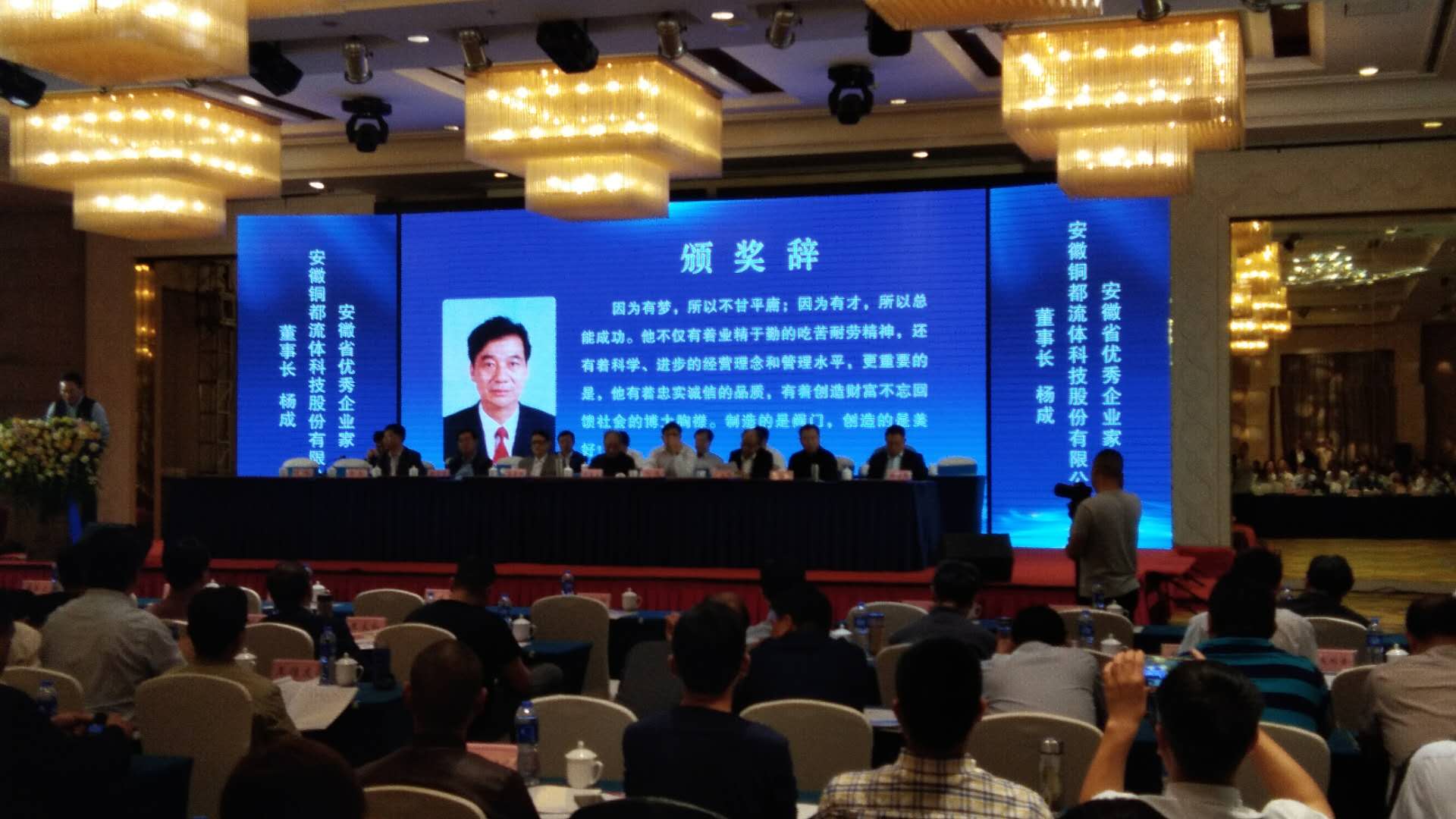 公司董事長楊成作為銅陵市代表,榮獲"安徽省優(yōu)秀企業(yè)家"榮譽(yù)稱號,并出席了安徽省優(yōu)秀企業(yè)家表彰會暨安徽省企業(yè)誠信建設(shè)大會頒獎(jiǎng)儀式。